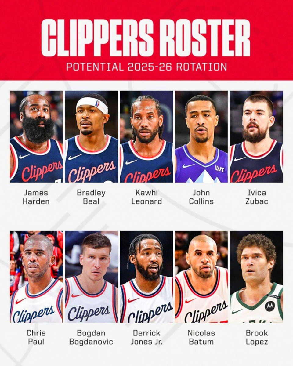 不仅用鲍威尔换回科林斯提升4号位深度,还引进比尔填补鲍威尔离队后空缺,加上大洛与保罗的加盟,这支快船队又一次打造出了一支纸面上看起来十分夸张的阵容,问题依旧是年龄与伤病隐患。